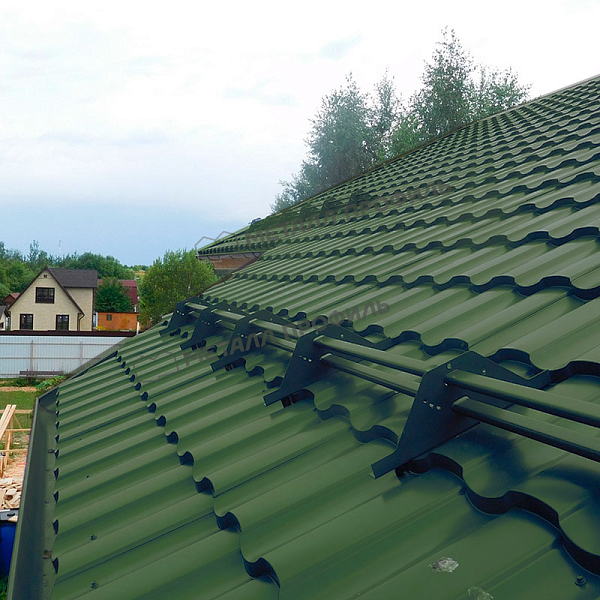 Форма профиля сочетает классический дизайн с современными инженерными решениями, обеспечивая жесткость и устойчивость к ветровым нагрузкам. Это позволяет использовать его на крышах с уклоном от 12 градусов.